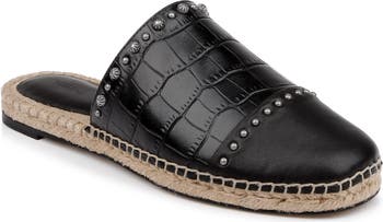 Polished studs accentuate the croc-embossed leather of this chic yet casual mule.