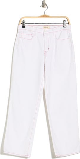 Contrast stitching highlights the clean lines of these cropped straight jeans cut from comfortable cotton nonstretch denim.