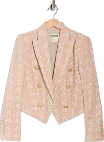 Decorative buttons and metallic threads amplify the chic style of this open-front blazer cut in a boxy, cropped silhouette.