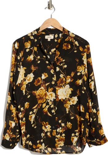 A V-neck and long sleeves shape this elegant top finished with a button‑front design and made from lustrous silk.