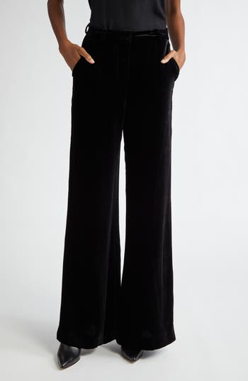 These wide-leg pants are cut from supersoft, silk-kissed velvet and finished in a rich, dark hue for a touch of drama.