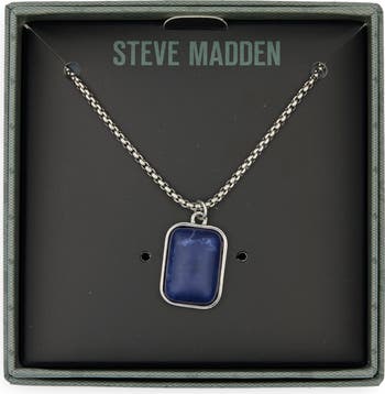 A vibrant lapis stone in a rectangular setting anchors this stainless steel necklace that's perfect for everyday wear.