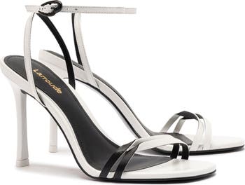 Put the perfect finishing touch on your night-out ensemble with this metallic ankle-strap sandal featuring an artfully twisted, doubled-up toe strap and lifted by a slender stiletto.