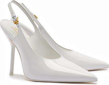 Memory-foam cushioning ensures all-day comfort to this sleek slingback pump handcrafted from Brazilian leather and perched on a stiletto heel.