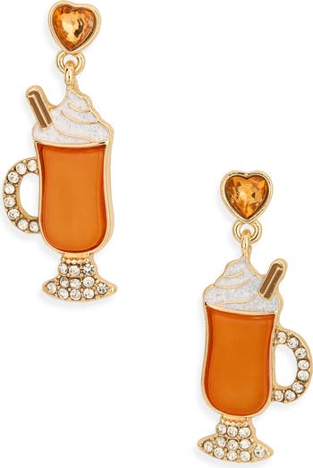 Put a whimsical finishing touch on any ensemble with these dessert-inspired drop earrings in a mug-shaped silhouette.