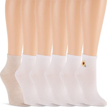 6-Pack Embroidered Rib Anklet Socks