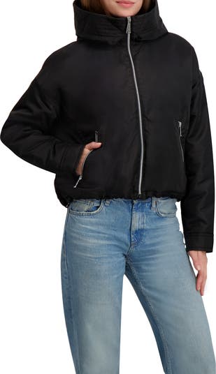 Ultrasoft faux-shearling lining at the hood amplifies the coziness of this streamlined jacket styled with handy zip pockets.