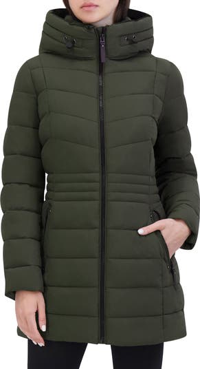 Bundle up for the cold-weather days in this channel-quilted jacket styled with an adjustable hood and handy pockets.