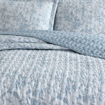 Soft and lightweight, this breathable-cotton quilt and sham set displays a charming floral pattern that refreshes any bed in your home.