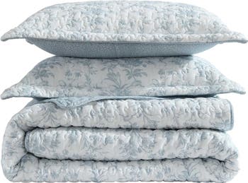 Soft and lightweight, this breathable-cotton quilt and sham set displays a charming floral pattern that refreshes any bed in your home.
