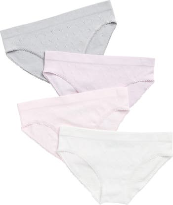 They'll love the look and feel of this four-pack of bikini briefs made from soft pointelle knit.