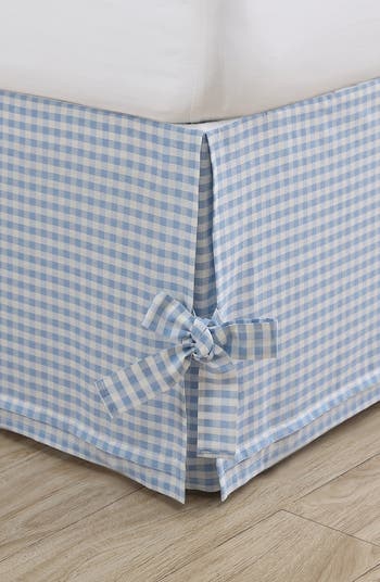 The Laura Ashley classics ruffled bed skirt is printed with a light blue and white ticking stripe that coordinates with many Laura Ashley bedding collections. It adds an elegant touch to finish off your bedding ensemble.