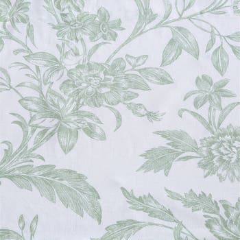 Floral toile designs have timeless appeal and the Natalie window valance is both classic and modern in soft green on ivory ground. made of 100% cotton. Machine washable for easy care. Valance is not lined.