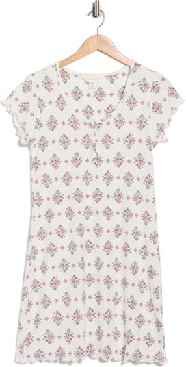 Sweet dreams start in this stretchy ribbed nightgown covered in pretty blooms and finished with lettuce-edge trim.