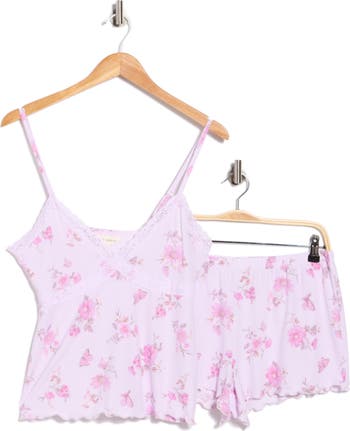 Sweet dreams start with these stretchy pajamas that pair a lace-trimmed camisole with matching shorts.