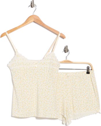 Sweet dreams start with these stretchy pajamas that pair a lace-trimmed camisole with matching shorts.