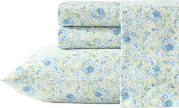 Drift off to dreamland with a sheet set in smooth, lustrous cotton that includes flat and fitted sheets, and pillowcases.