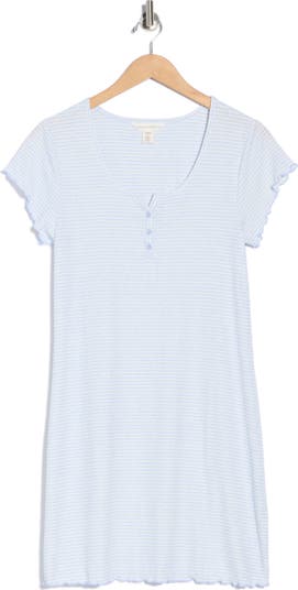 Sweet dreams start in this stretchy ribbed nightgown covered in heathered stripes and finished with lettuce-edge trim.