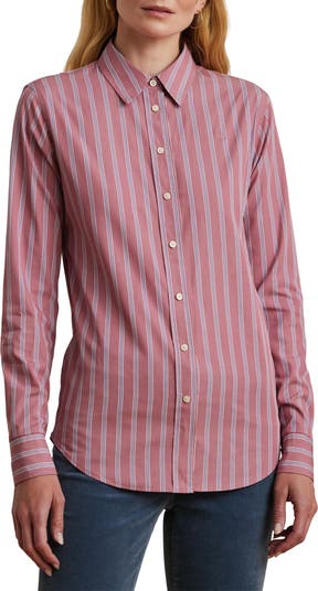 Variegated yarn-dyed stripes punctuate a crisp cotton-broadcloth shirt that looks right any day of the week.