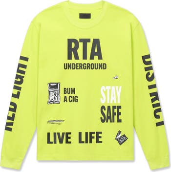 Effortless comfort and edgy character define this long-sleeve T-shirt detailed with signature streetwise script branding at the chest, back and sleeves.