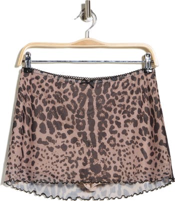 A low-rise miniskirt cut from airy mesh is covered in animal spots to bring an on-trend vibe to your night-out look.