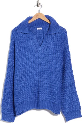 Embrace sweater weather in this chunky knit style featuring a relaxed fit and a Johnny collar.