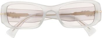 Goldtone accents gleam on the temples of these rectangular sunglasses fitted with CR-39 lenses that offer complete UV protection.