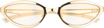 Retro vibes meet striking flair with cat-eye shades featuring gleaming metal frames and matching tonal lenses.