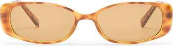 Hardware-accented temples exude signature appeal on everyday sunglasses shaped in a slender rectangular silhouette for a retro aesthetic.