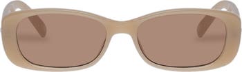 Set your sights on a throwback silhouette that's hot again for the season with these slim rectangular sunnies featuring a cool '90s look.