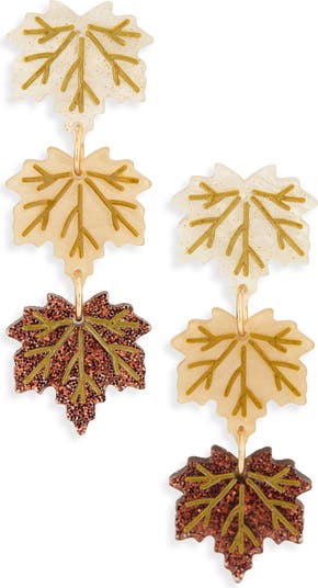Put a whimsical finishing touch on any ensemble with these festive drop earrings in a leaf-shaped silhouette.