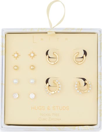 This set of six earring pairs includes a mix of stud and hoop styles accented with cubic zirconia and faux pearls for versatile, polished wear.
