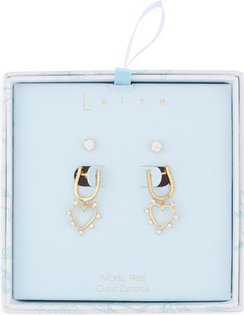 Bring instant sparkle and shine to your lobes with this mix-and-match pack that pairs faceted stud earrings with open-heart drop earrings.