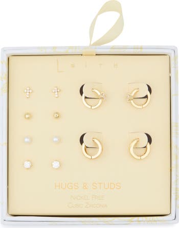 Mix and match with this golden set of earrings that pairs cubic zirconia studs with gleaming huggie hoops.
