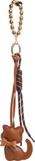 Personalize your favorite bag with this clip-on charm featuring an adorable faux-leather cat-shaped detail and a corded accent.