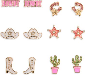 Elevate your ear stack with this assorted pack of stud earrings featuring rodeo-worthy, cowboy-inspired designs.