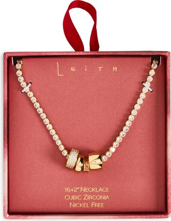 Sparkly cubic zirconia illuminate this elegant 14-karat gold-plated tennis necklace centered by assorted rondelles with a high-shine finish.