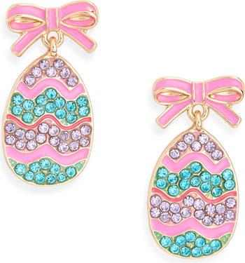 Put whimsical finishing touch on any ensemble with these Easter-inspired drop earrings in a crystal-embellished egg silhouette.
