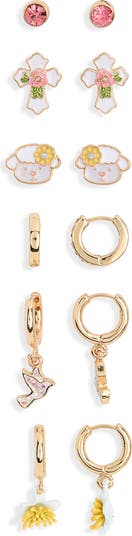 Put whimsical finishing touch on any ensemble with this Easter-inspired set of assorted earrings detailed with crosses and more.