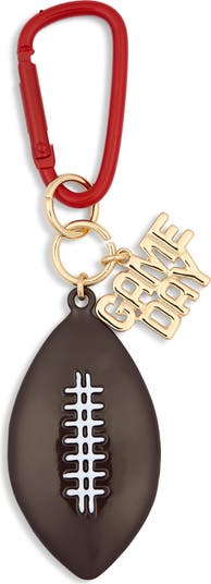 Add a personalized touch to your favorite bag with a clip-on charm adorned with football-inspired tokens.