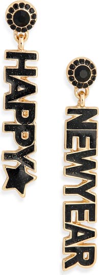 Ring in the new year with these stunning drop earrings marked by shimmering block letters and dazzling crystals.