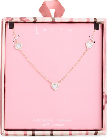 Bring romantic sweetness to any day-to-night outfit in this necklace featuring a trio of crystal-framed hearts.