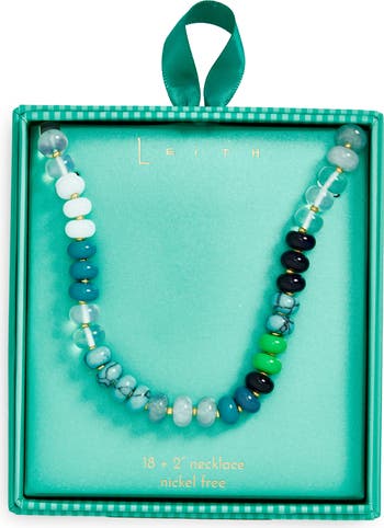 Brighten your day with this colorful collar necklace traced by polished glass and stone beads.