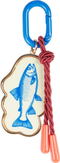 Personalize your favorite bag with this carabiner clip-on charm featuring an adorable painted fish set in a gleaming metal frame and finished with a corded accent.
