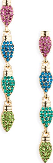 Linear-drop earrings inspired by a strand of Christmas lights ensure your stack is set to holiday mode for upcoming festive outings and events.