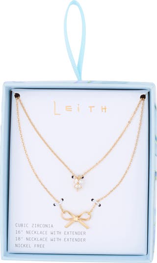 Refresh your jewelry box with this set of two necklaces featuring cubic zirconias, faux pearl and a bow charm.