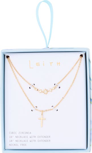 Refresh your jewelry box with this set of two necklaces featuring cubic zirconias and a cross charm.