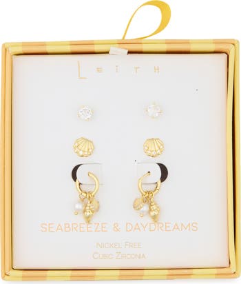 - Set includes three pairs of earrings
