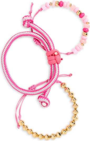 Elevate your wrist stack with this assorted trio of beaded paracord bracelets with adjustable slide closures.