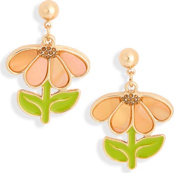 Add a pop of springtime whimsy to your lobe look with these enamel and cubic-zirconia drop earrings shaped like daisies.